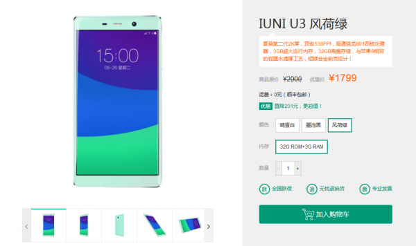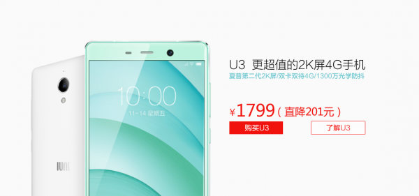 1799元 IUNI U3 4G版降价啦