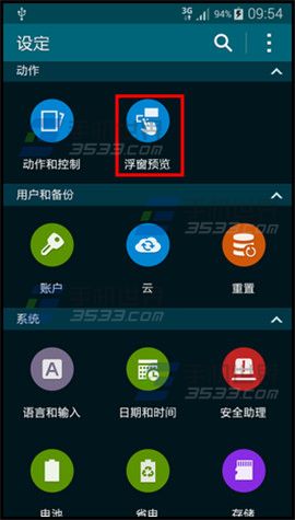 1)打开三星Alpha手机【设定】,点击【浮窗预览】,将该功能开启。(如下图)