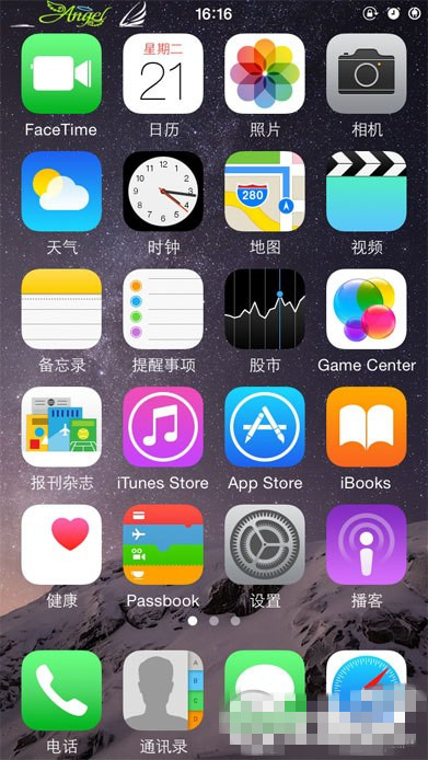 3、这里我们看到了手机桌面,其实是在伪安全模式下,像我自己修改的dock栏透明、3D翻页等都失去效果,点击进入cydia。