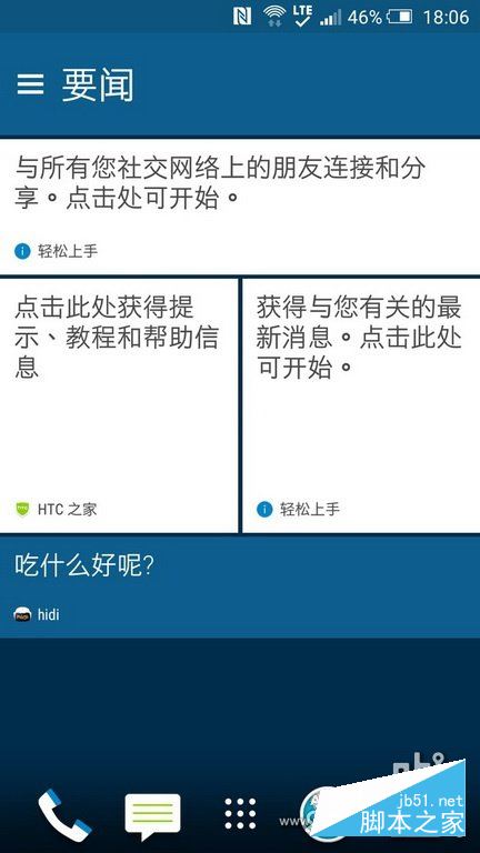 htc特有的资讯页面,可将微信、微博、国内新闻直接在页面上整合。