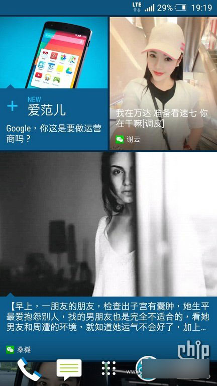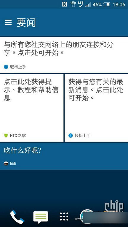 htc特有的资讯页面,可将微信、微博、国内新闻直接在页面上整合。