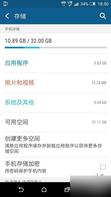 系统版本5.0.2,32G版本可用空间约22G(已安装部分app)