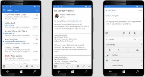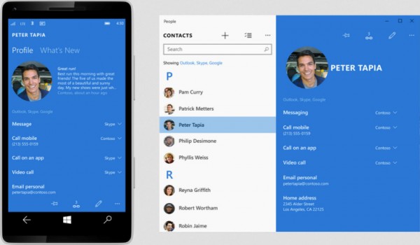 展示的Windows 10手机版界面截图涉及了好多应用,包括Outlook,日历,图库及联系人,可以看到顶栏已经与应用界面融为一体,应用底栏多有包含提供相关操作的按钮,设计更趋简洁实用,色彩更统一。微软称很多开发工作仍在开展中,有些应用截图其实是概念性演示,不过这些开发工作仍然以用户反馈作为参考有序进行。