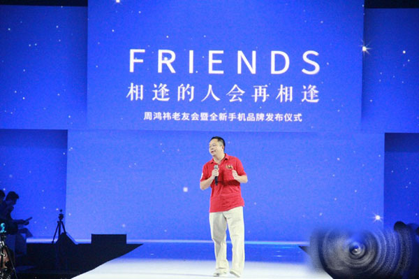 四位嘉宾上台与周鸿祎握手,他们有的是周鸿祎的粉丝,有的是360品牌的拥趸,也有优酷《老友会》节目的成员