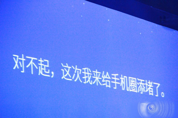 周鸿祎正在介绍发布会三大潜规则,第一是必备的“工作装”。但周鸿祎今天是一身红衣服登台;第二条规则是发布会的时长都非常漫长,PPT做得非常精致,但观众未必买账;第三条规则是所有厂商都在跟苹果对比,但很多老总还是边骂苹果边用苹果。