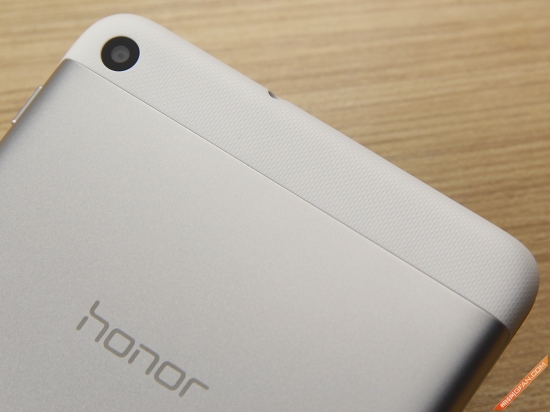 而机身背面则是采用了三段式的结构,背面顶部与底部均采用了塑料材质,而中间部分则是金属的质感。虽然这样的设计我们已经见过很多了,但非常值得肯定的是荣耀畅玩平板的背部四角与边缘部分圆润的处理还是能在提升握持感上起到不小作用的。