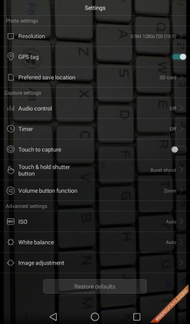 在拍照界面上,EMUI 3.0的取景界面还是十分大的,打开相机应用之后,除了几个必要的按钮之外,剩下的界面几乎都用来取景了,对于这一点来说,我们还是十分认可的。同时在操控性上,荣耀畅玩平板还能够支持语音控制以及时间控制等功能。