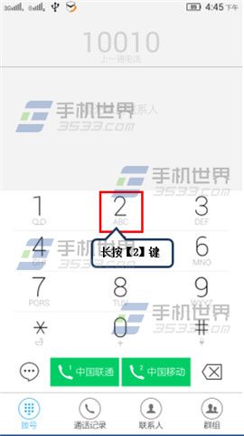 3)使用时我们只需在拨号界面长按设置好的数字即可。(如下图)