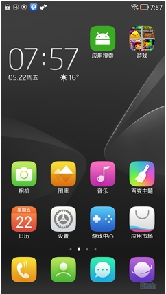 两个系统都追随潮流有着浓厚的扁平化风格,但是EMUI3.0的应用图标比乐蛙OS6的更加圆润。并且同样是5英寸屏幕,乐蛙OS6的应用图标要略大于畅玩4C的图标,图标间的缝隙更小,看着更舒服,相比来说识别度更高。
