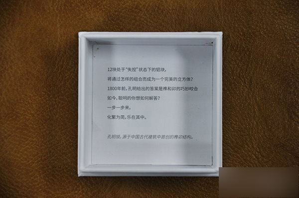 小编不禁好奇心大发,将这个正方体大卸八块,拆开后,在铁块的内表面印着“拼回去,才是乐趣的开始”字样。然而想要拼回去就难了,还好最后在网上找了个教程照葫芦画瓢将其还原了回去,不禁让人佩服古人的智慧。