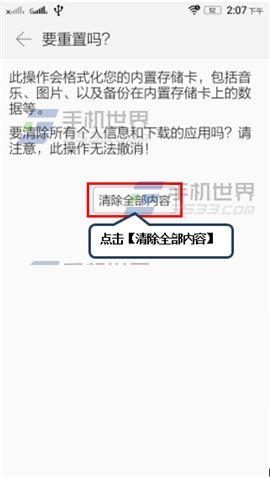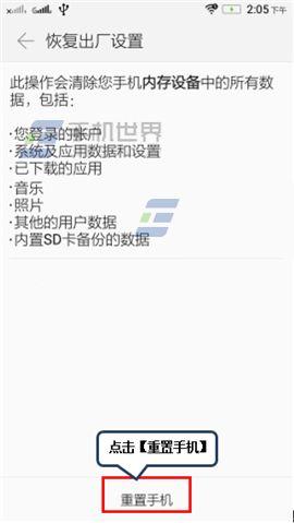 2)点击【重置手机】,最后点击【清除全部内容】。(如下图)