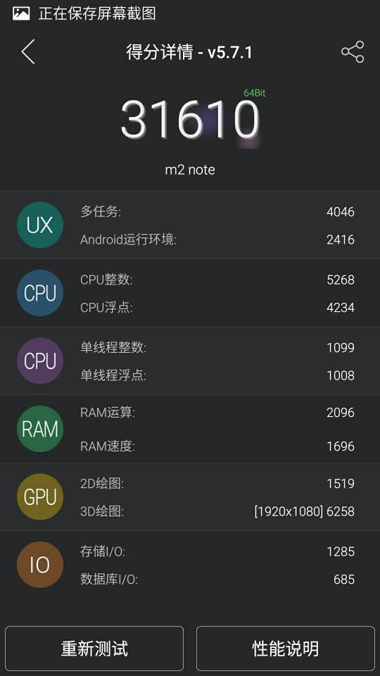 魅蓝Note 2现场跑分: