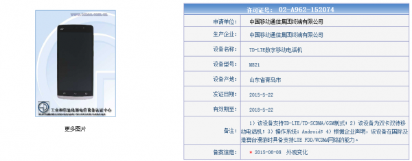 2013年8月,中国首次推出自主手机品牌“和”首批手机终端,支持3G的M601、M701上市。随后,去年6月份,支持4G网络的M811、M812C相继上市。进入2015年之后,中国移动的自主新机一直没有消息。不过日前,他们在官方微博上宣布,全新的两款新机:A1、N1将于6月12日正式发布。而在工信部网站上,我们发现代号为M821、M623C的两款新机已经入网许可,不出意外,这就是A1和N1(具体对应型号目前还不确定)。