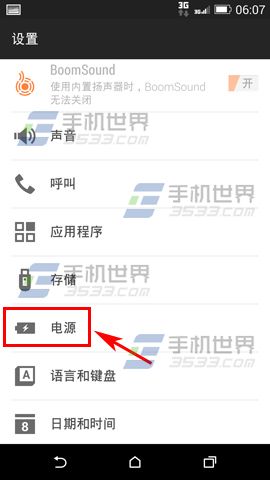 打开HTC M8的【设置】,点击【电源】,然后勾选【显示电量】选项就可以了。(如下图)