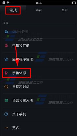 1)打开OPPO R7的【设置】,在【常规】栏选择【手势体感】,点击【黑屏手势】;(如下图)