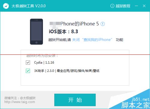 4、打开越狱工具2.0 点击开始越狱吧