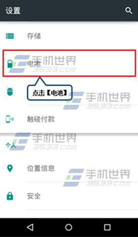 1)进入New Moto X【设置】界面,点击【电池】。(如下图)