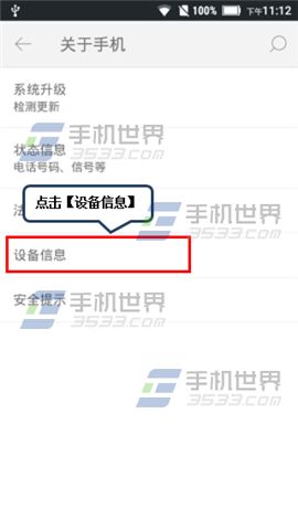 1)打开【联想乐檬K3】设置,点击【关于手机】,点击【设备信息】。(如下图)
