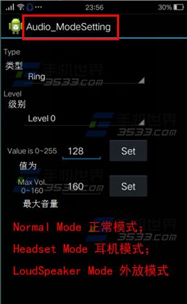 2)选择【LoudSpeaker Mode】外放声音模式。再设置【Set】值即可。PS:请谨慎设置Set的数值,数字不得超过最大值限制,遭成破音的话小编概不负责!!(如下图)