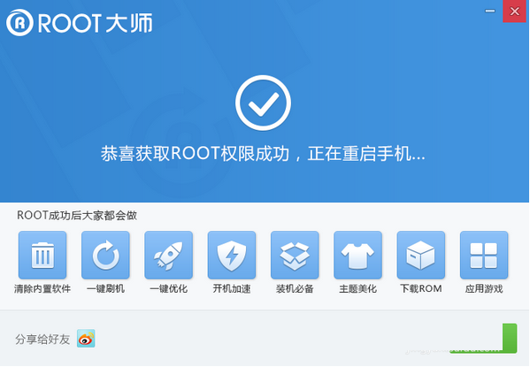 5.一般不超过5分钟,就会显示ROOT权限已获取