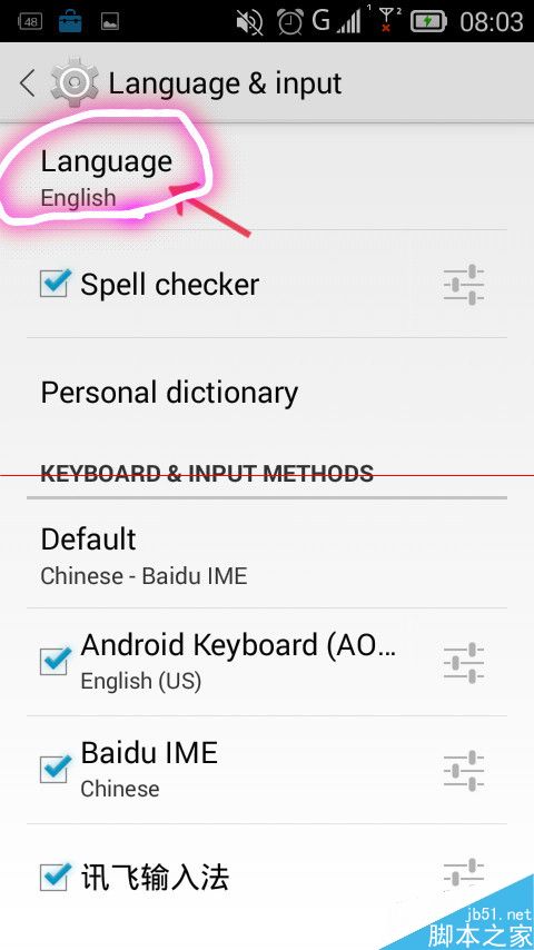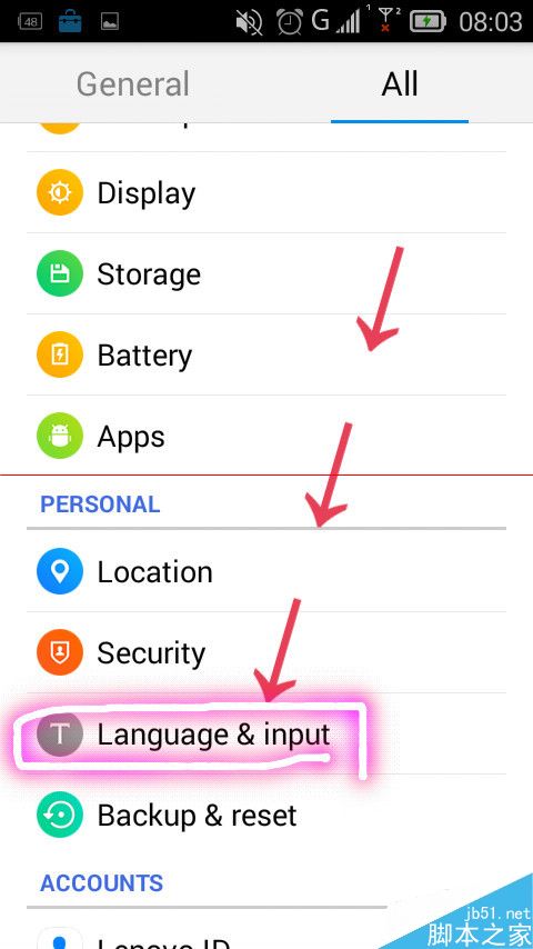 4、进入LANGUAGE&INPUT之后请在第一选项中找到LANGUAGE的缩写再次点击进入,请看教导图。