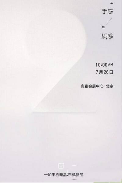 北京时间7月28日上午10点,一加手机2发布会将在北京奥雅会展中心正式开幕,届时这款年度新旗舰也将正式与我们见面。鉴于一加手机一代备受好评,其接棒产品一加手机2应该也2015-07-28- 7月28日消息 根据此前报道,一加将在今天上午10点于北京奥雅会展中心召开发布会,发布备受关注的一加手机2代,脚本之家届时也将为大家带来图文直播。然而就在今天凌晨,有2015-07-28