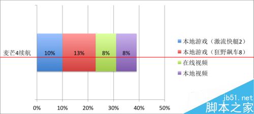 1.屏幕亮度最高,Wi-Fi连接且移动信号在线,静音模式下进行3D游戏《激流快艇2》半小时