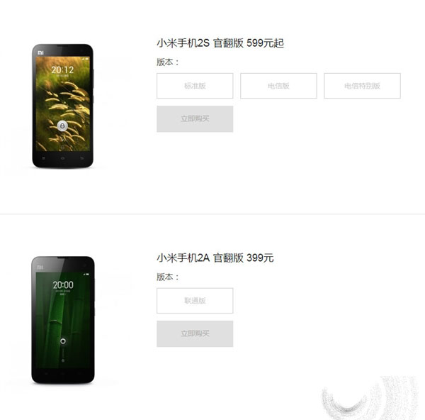 此外,小米手机3、红米手机、小米手机2S、小米手机2A和小米手机2在官翻机页面上均有上架,但只有小米手机2、红米手机2以及小米手机3有货,其余均显示为缺货状态。
