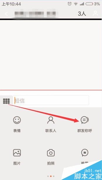 3、发短信咱们得有对象是吧,我们要先把祝福对象给选好了,自打MIUI更新之后,就觉得不是很好用了。看到箭头所指的小人按钮,点击它来增加对象吧。