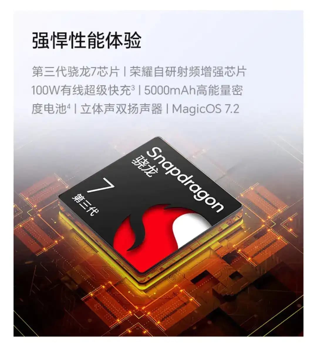 4.续航:荣耀100采用5000mAh电池,,100W有线快充;
