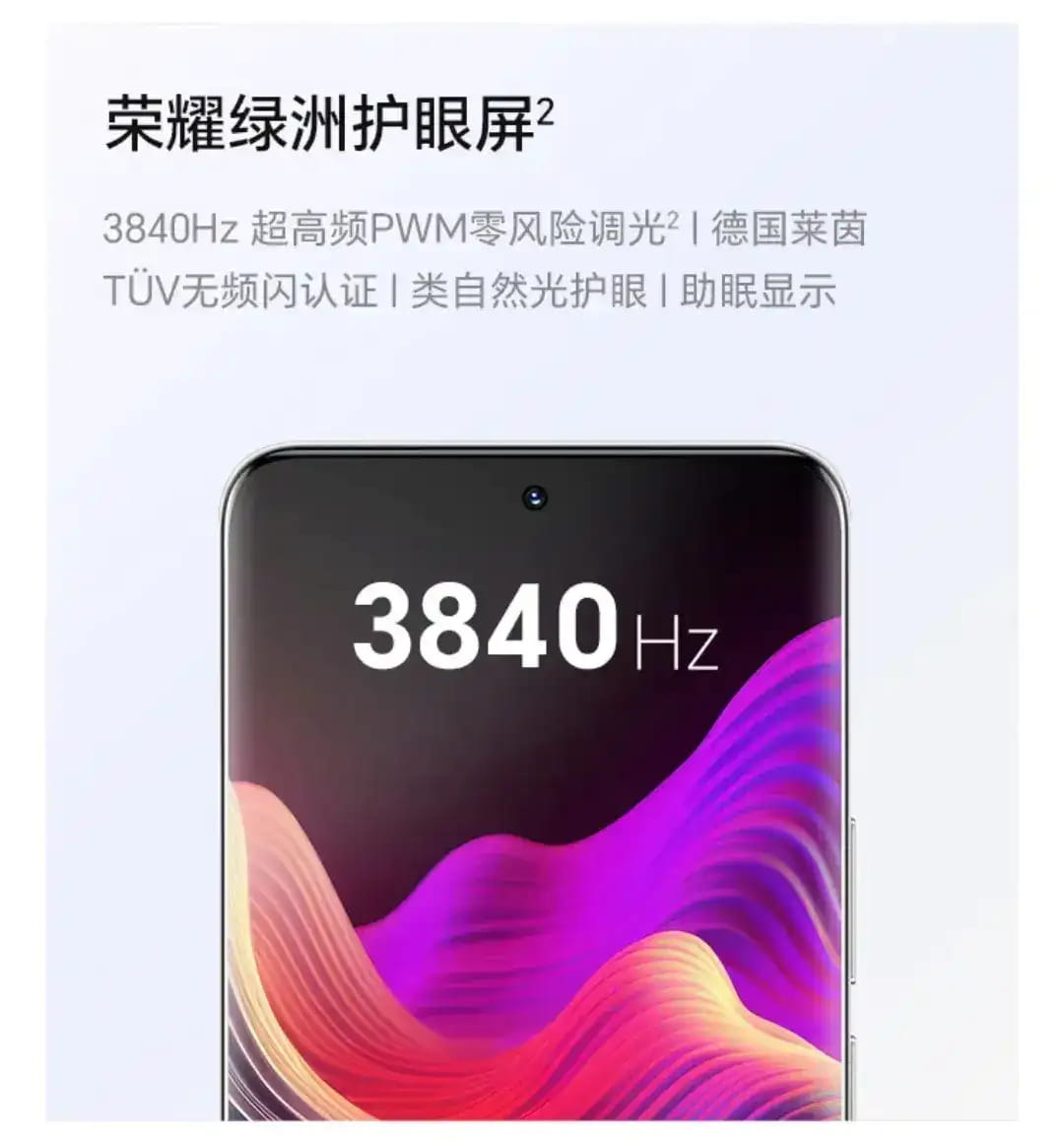⒉.屏幕:荣耀100采用6.7英寸四曲面屏,1.5K分辨率,120Hz刷新率,局部峰值亮度2600nit,支持3840Hz高频PWM调光;