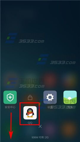 先进入后台界面,选择一个你不想被清理的应用程序,这里以【QQ】为例,按住并下拉【QQ】,可以看到右上角有【锁】的图标,这样就锁定了后台应用程序了。(如下图)