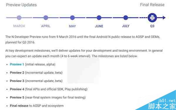 以上为博客全文,以下为安卓7.0预览计划时间表。