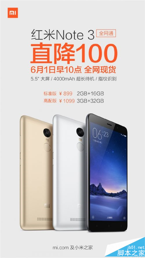 需要注意的是,本次调价的是红米Note 3全网通版本,其中2GB内存+16GB存储的标配版售价降至899元,而3GB内存+32GB存储的高配版变至1099元。