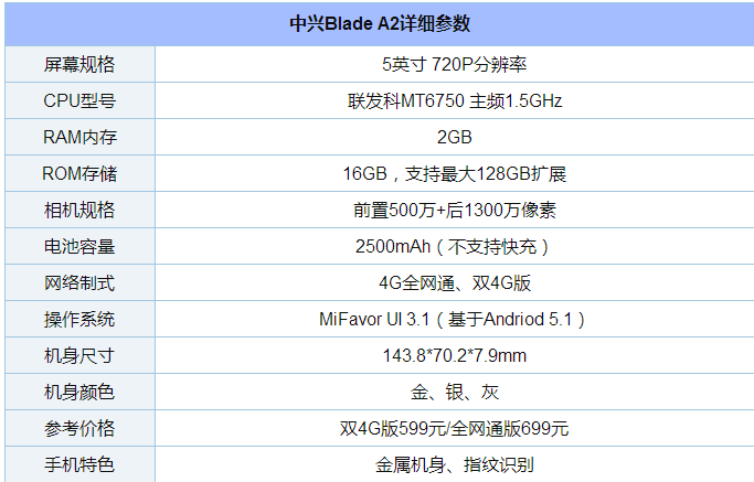 从性能测试来看,虽然中兴Blade A2跑分并不算高,但鉴于搭载了联发科今年新款处理器,跑分达到了近4万分,在同价位机型中,新能也算不错的了。总体来看,中兴Blade A2兼顾出色的外观、性能、指纹识别、全网通等特性,在599元这个价位,具备很高的性价比,值得入门用户考虑。