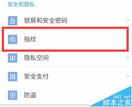 2、之后我们向下翻,找到安全和隐私下的指纹