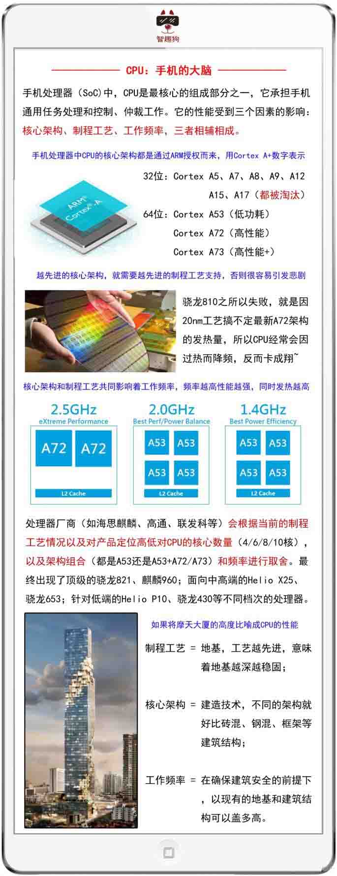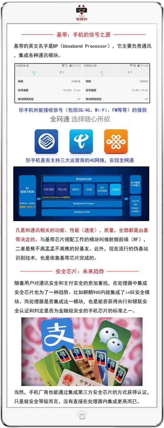 怎么样,看到这里你还敢小看手机处理器吗?智趣狗还得再提醒你一下,每颗手机处理器还会配有很多周边芯片,比如电源管理芯片等等。之所以有时采用相同处理器的两款手机在功能上有所差异,就是因为处理器中基带、ISP等芯片都是可以用第三方芯片替代的。比如有些手机处理器的基带不支持电信网络,想获得全网通能力就必须外挂一颗高通的全网通基带。