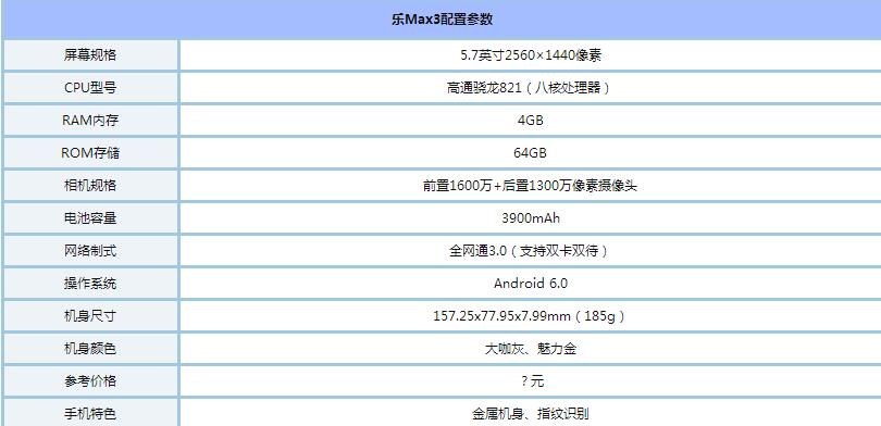 乐视max3什么时候上市?乐视max3配置、参数以及价格介绍