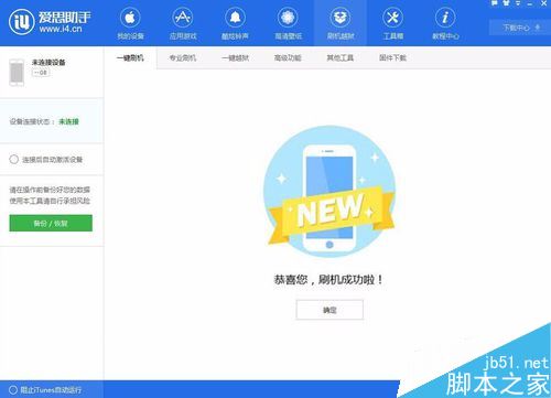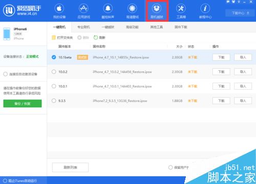 接着,在打开刷机越狱这一选项后,我们在它选项下找到“一键刷机”并同样点击这一选项功能按钮。