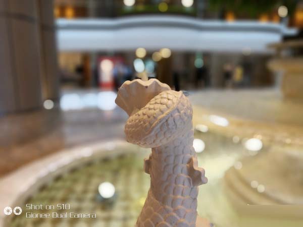 在上图中我们就能看到金立S10的强大虚化拍摄能力,图中的金立S10正处于虚化拍摄的预览界面,此时的虚化预览就非常的自然,被拍摄的主体与背景之间的过度十分的自然,背景虚化效果也非常的不错。