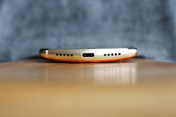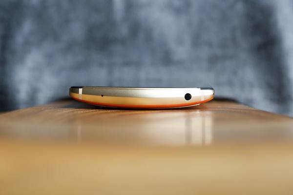 可以从顶部和底部的角度看出,美图 V6 并不是采用直板式设计,由于存在一定的弧度,所以握持感也更佳,而且美图 V6 没有取消 3.5mm 耳机孔。