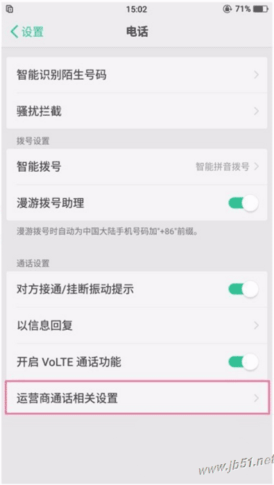 3、进入【运营商通话相关设置】。