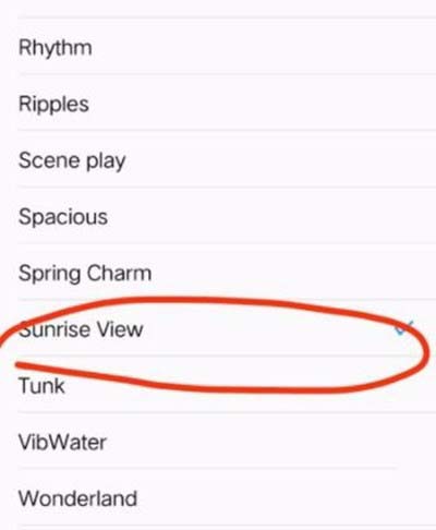 4、点进去,后面有个蓝色小勾勾的就是目前正在使用的铃声,你可以选择其他系统铃声,也可以自定义。