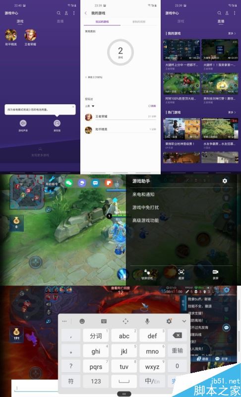 除了强大的录制功能以外,三星的游戏中心功能也多少为A60元气版的游戏感受增添了一份保障。除了可以选择将游戏全部收录至游戏中心中而非展示在桌面以外,游戏中心还可以默认以高性能、静音等设置进入游戏;可以快速观看直播;可以统计游玩时长和本地回看自己录制的游戏视频;锁屏挂机,打开浮窗应用;当然还有最为实用的游戏中浮动键盘。