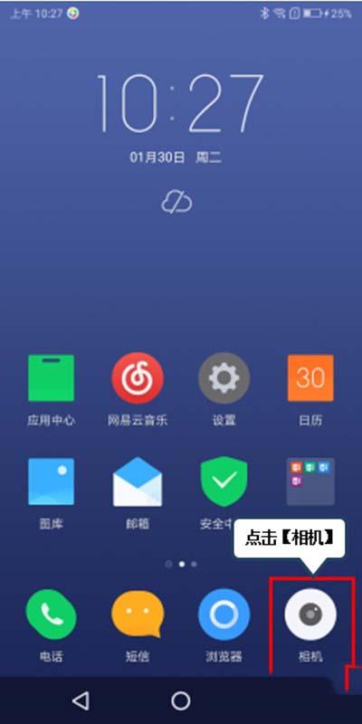 1、在【待机界面】点击【相机】。