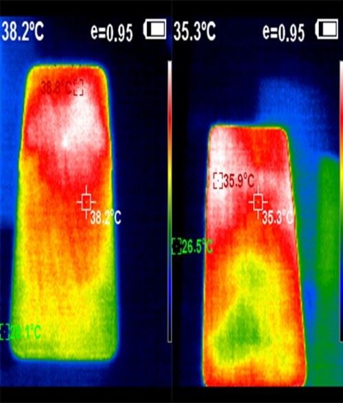 此外,由于OPPO Reno 10倍变焦版采用了导热凝胶、三层石墨、铜管液冷所组成的三重散热技术,所以它的散热效果也非常优秀。在一局30分种的游戏过后,手机背面最高温度为38.8度,正面最高温度为35.9度。考虑到夏天室内温度的影响,OPPO Reno 10倍变焦版的机身温度还是控制的相当不错的。