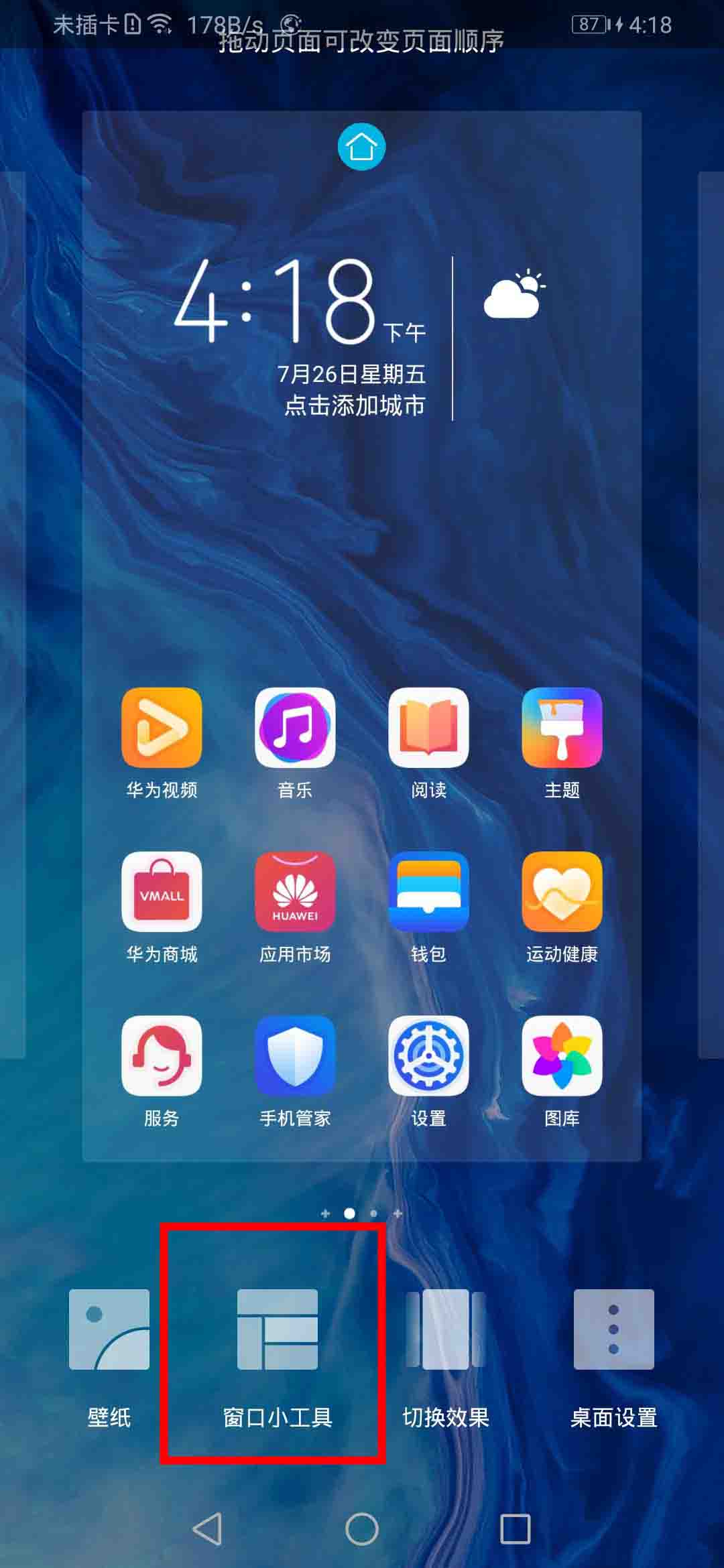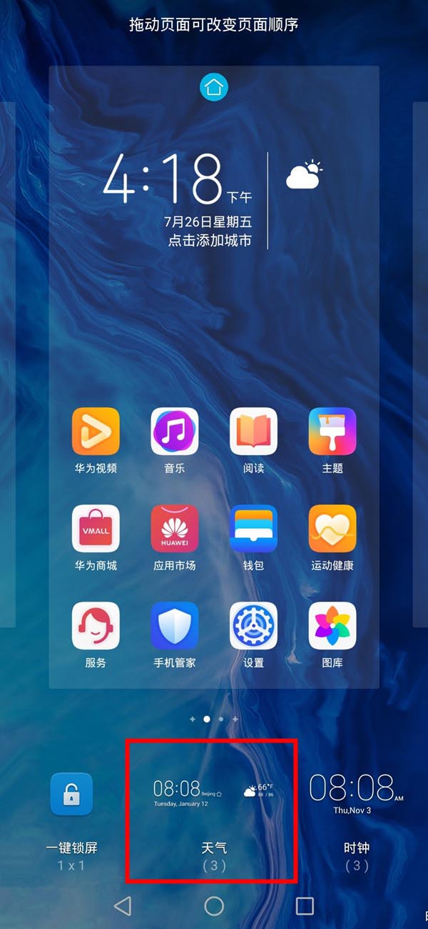 荣耀9x怎么添加桌面天气?