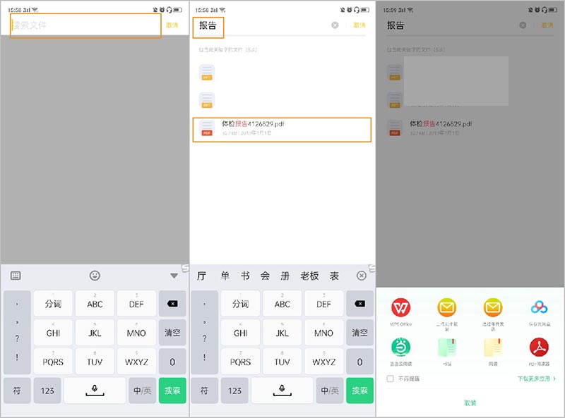 1、通过【文件管理】--点击右上方的搜索图标进入。