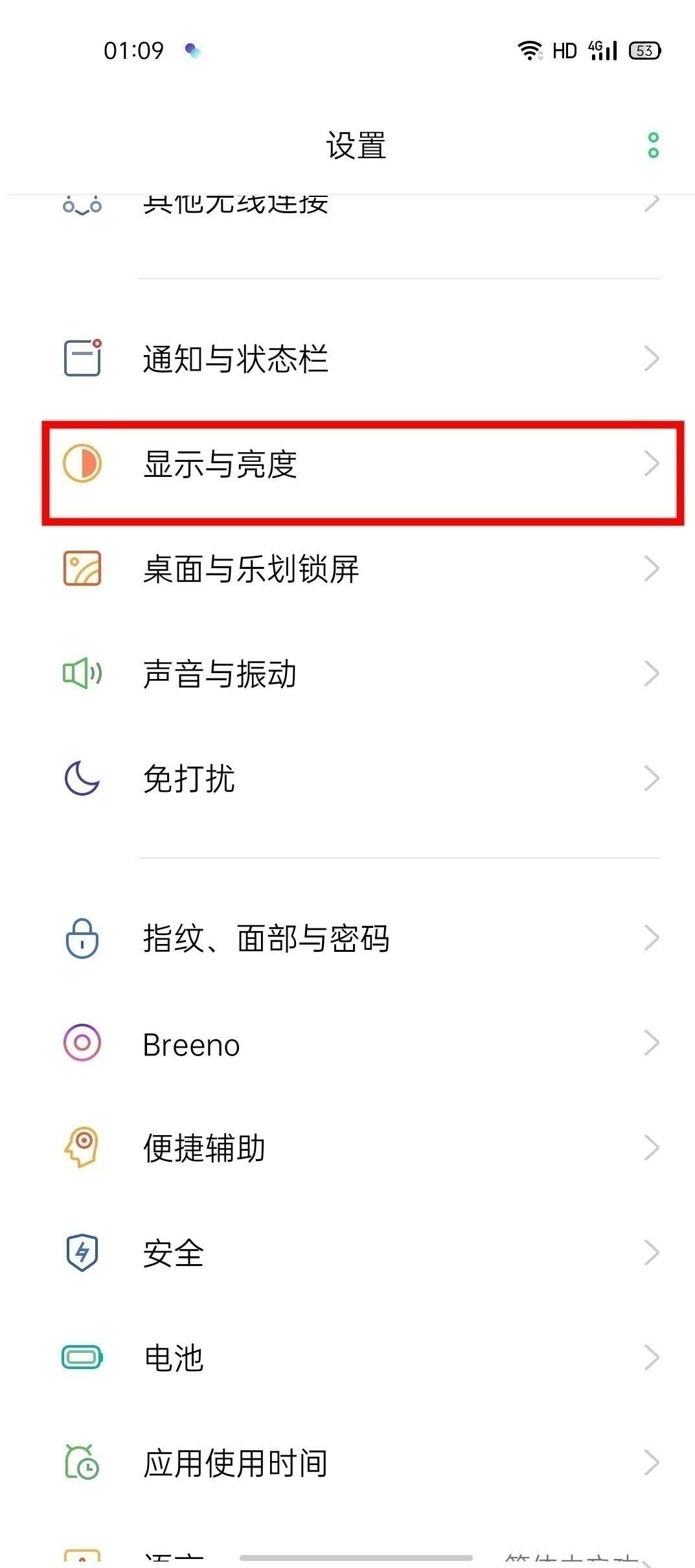 2、点击打开【显示与亮度】。