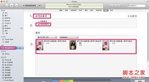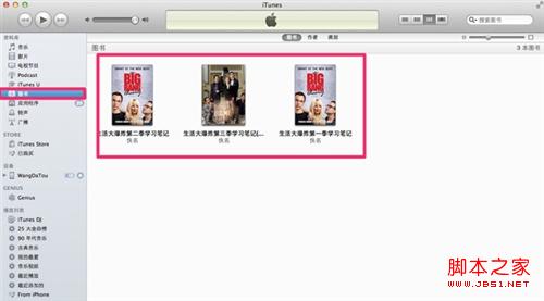 4.把3本书拖入进图书里面,就会自动加载到你的iTunes,如图所示。